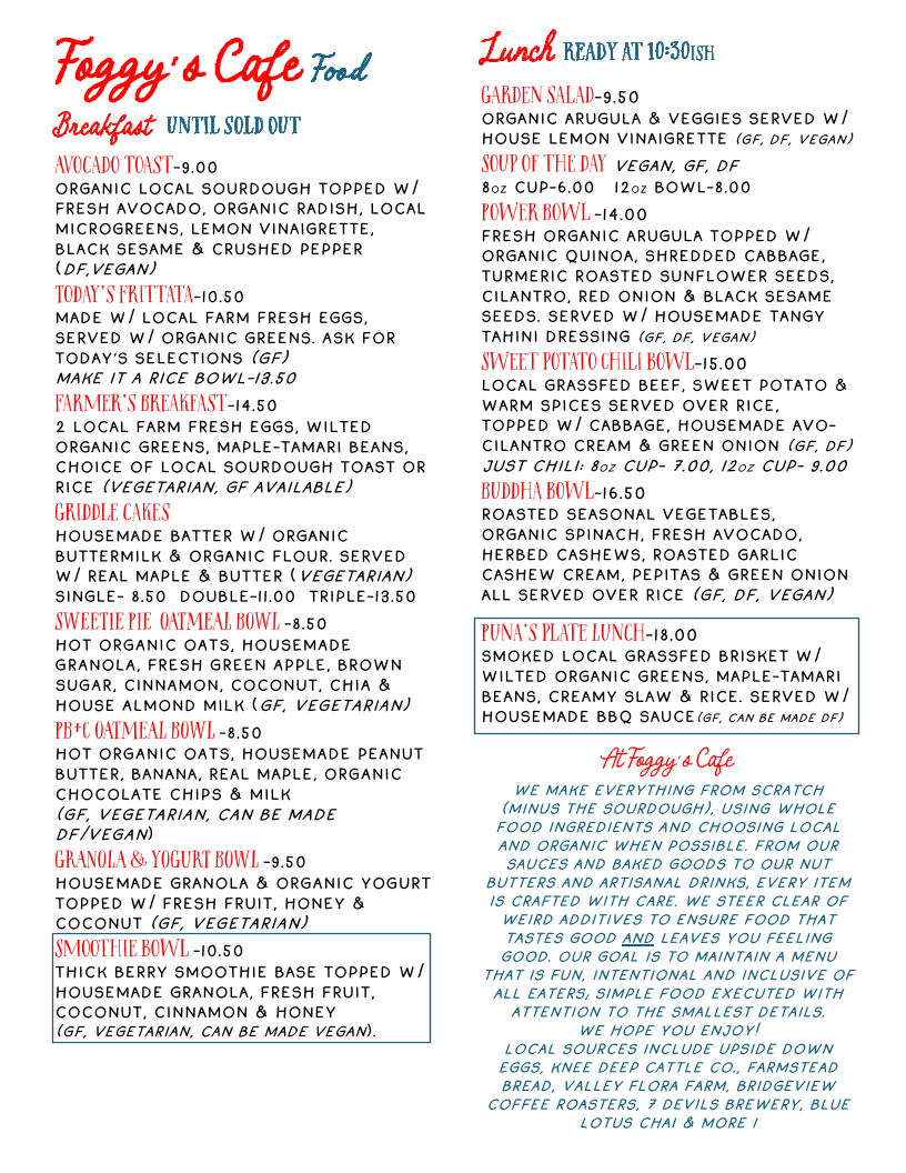 Every dish is crafted with care, ensuring flavors are layered yet balanced. Foggy's Cafe is more than just a meal; it's an experience filled with sunshine and good energy. Treat yourself—you won’t be disappointed!